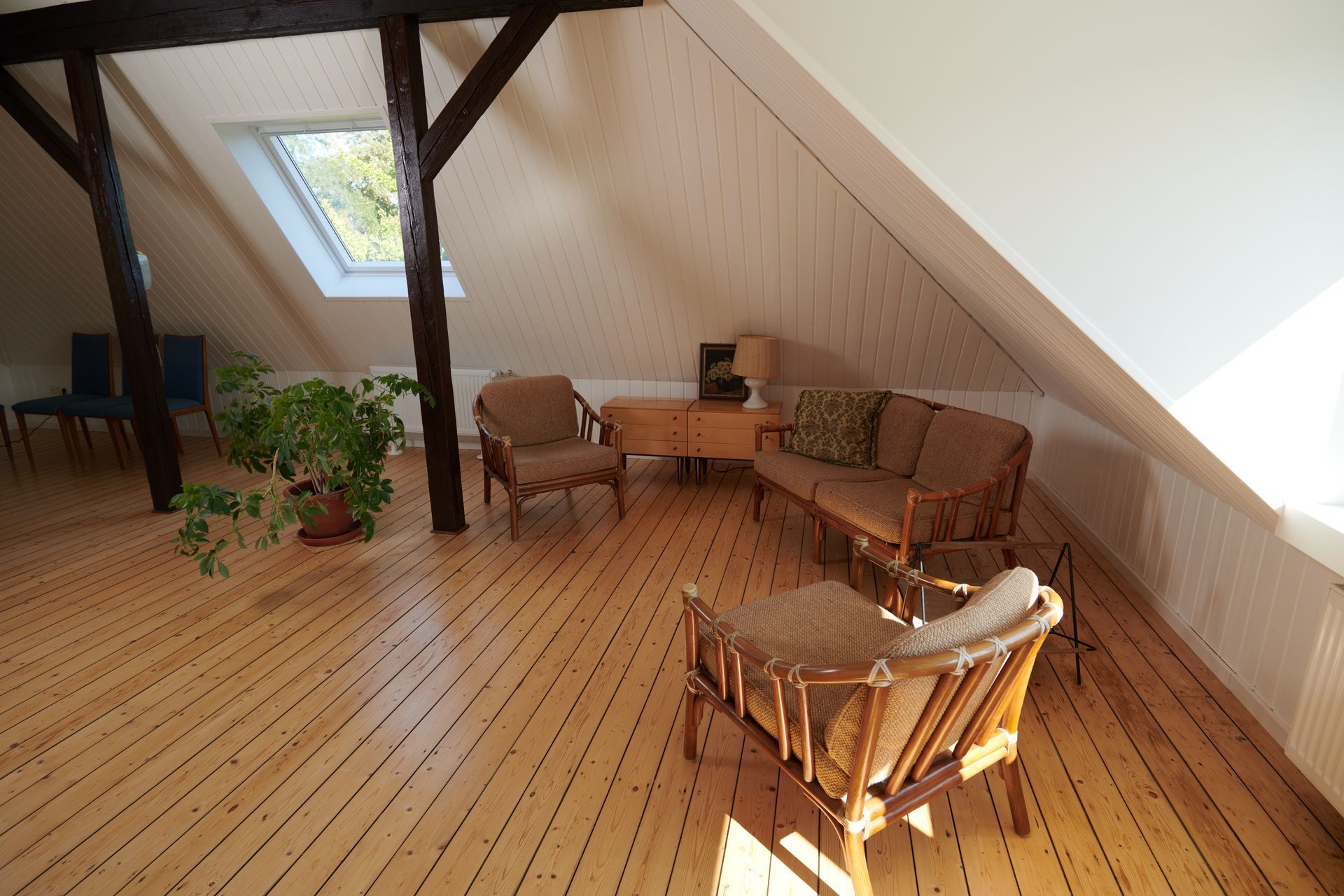 Der helle großzügige Raum Martha bietet auf 42 m² Platz für Gruppencoachings, Supervisionen oder Yoga und Autogenes Training. Der Raum ist mit einem kleinen 12 m² großen Nebenraum ausgestattet. Durch die moderne Teeküche mit Blick in den Garten und eigenem Badezimmer bildet das Obergeschoss eine eigene Einheit in unserem Coaching- und Therapiehaus.